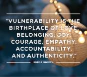 In the process of these workshops we explore topics such as vulnerability, courage, shame, and worthiness. We examine the thoughts, emotions, and behaviors that are holding us back and we identify the new choices and practices that will move us toward more authentic and wholehearted living. The primary focus is on developing shame resilience skills and developing daily practices that transform the way we live, love, parent, and lead.